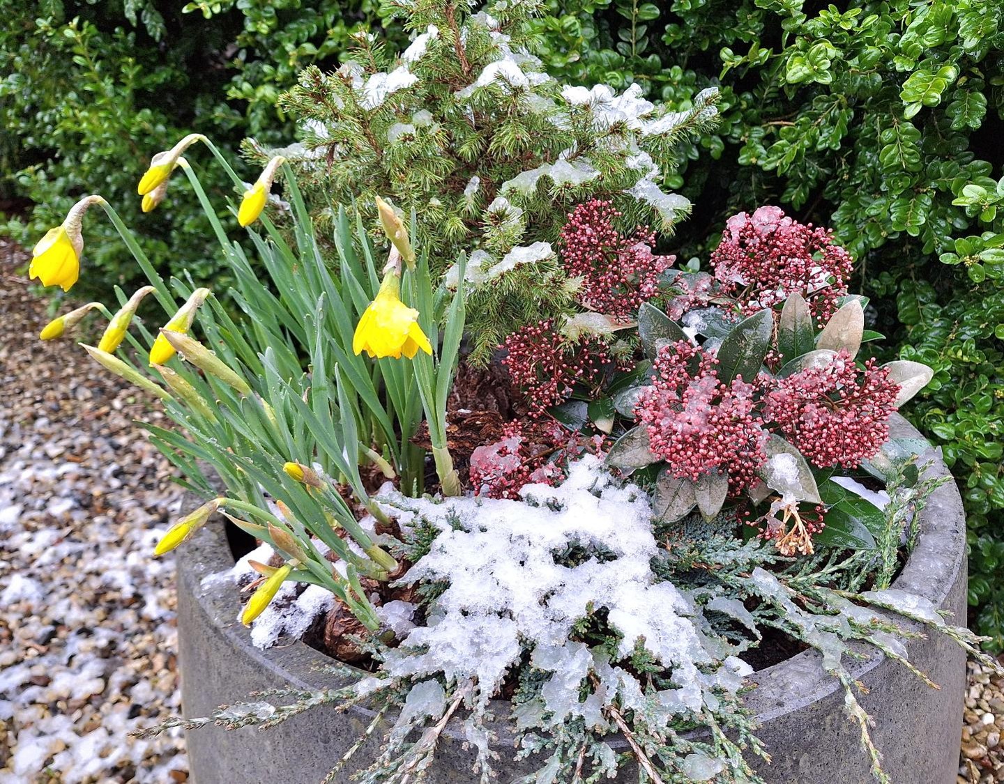 Den bagerste har til gengæld overvintret og har blomstret i hvert fald en måned.